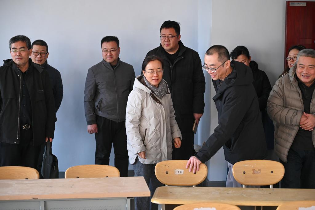 徐静一行依次走访查看了美术学院的办公楼、教室、画室、实验室等关键场所设施。每到一处,徐静都深入了解学院各项准备工作的落实情况,并围绕环境建设、氛围营造、学习宣传等重点内容提出指导意见。针对现场发现的问题,当场给出具体整改建议,确保各项筹备工作精准高效推进。